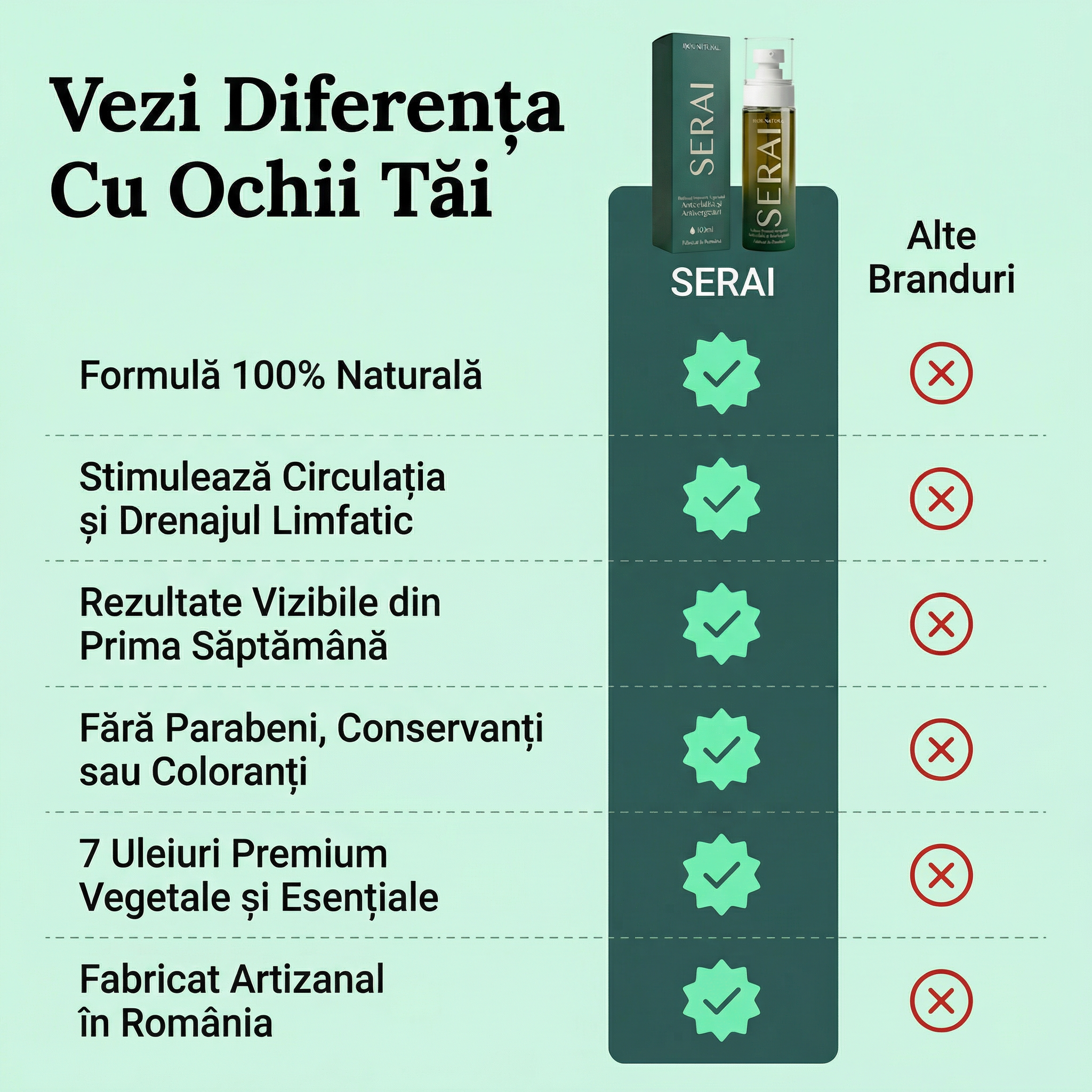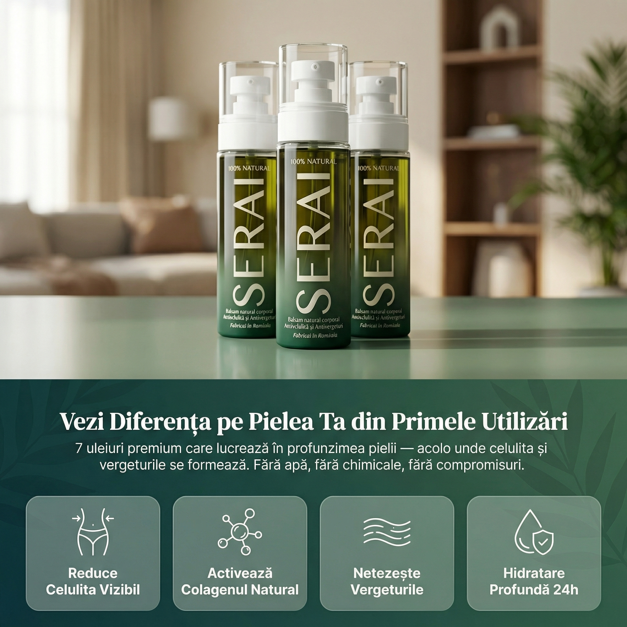 SERAI e diferit: 7 uleiuri pure, fără apă, fără chimicale. Fiecare picătură penetrează în straturile profunde ale pielii unde celulita se formează.