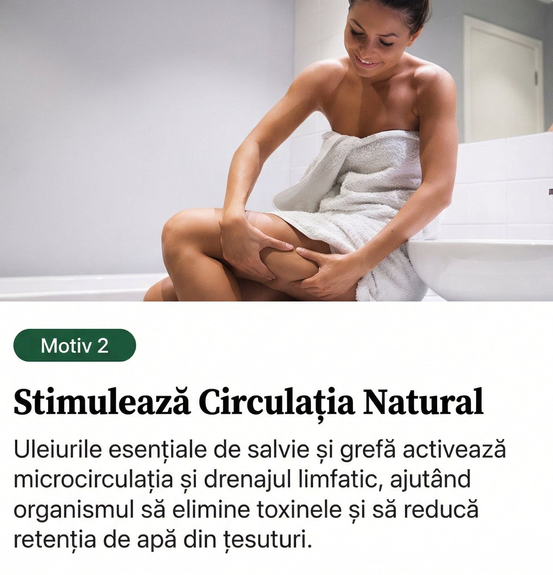 Uleiurile esențiale de salvie și grefă stimulează microcirculația sanguină și activează drenajul limfatic.