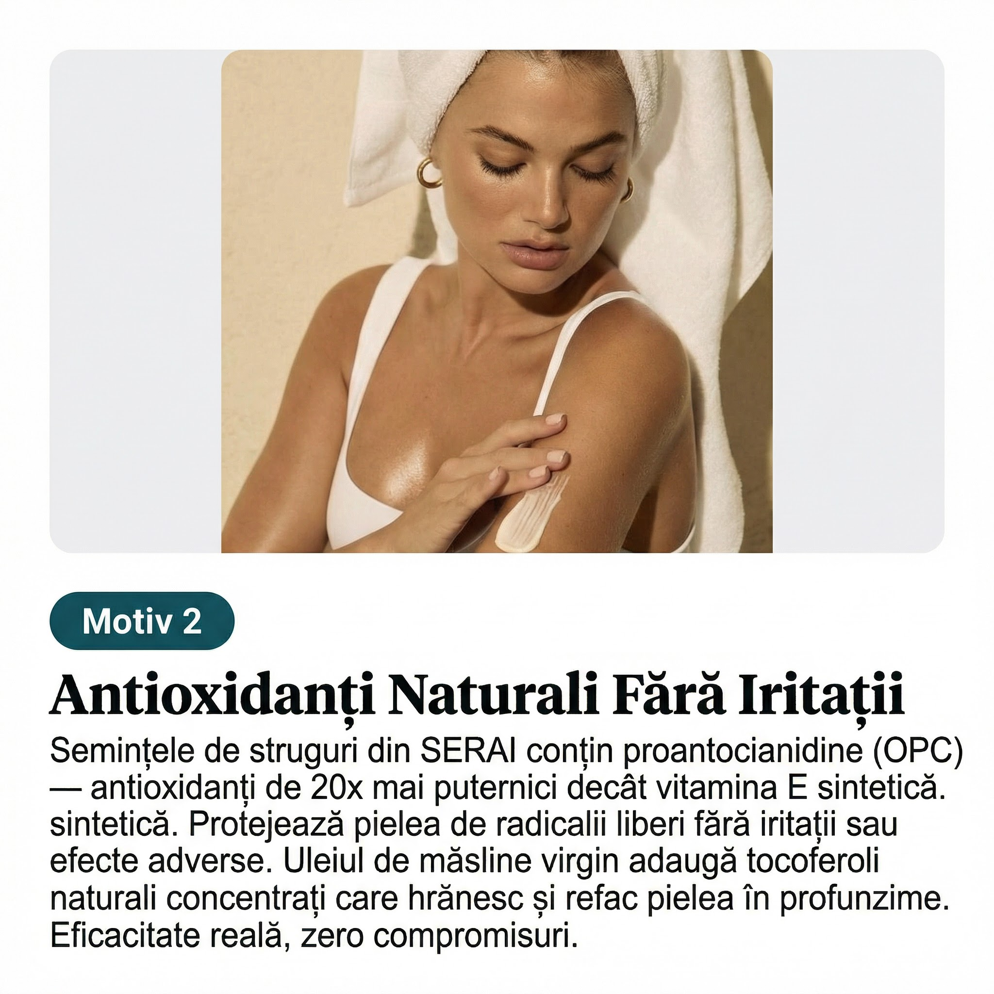 ✓ 100% ingrediente active concentrate ✓ Fiecare aplicare = nutriție și circulație reală ✓ Antioxidanți naturali puternici din semințe de struguri și migdale ✓ Penetrare profundă, nu doar pe suprafață