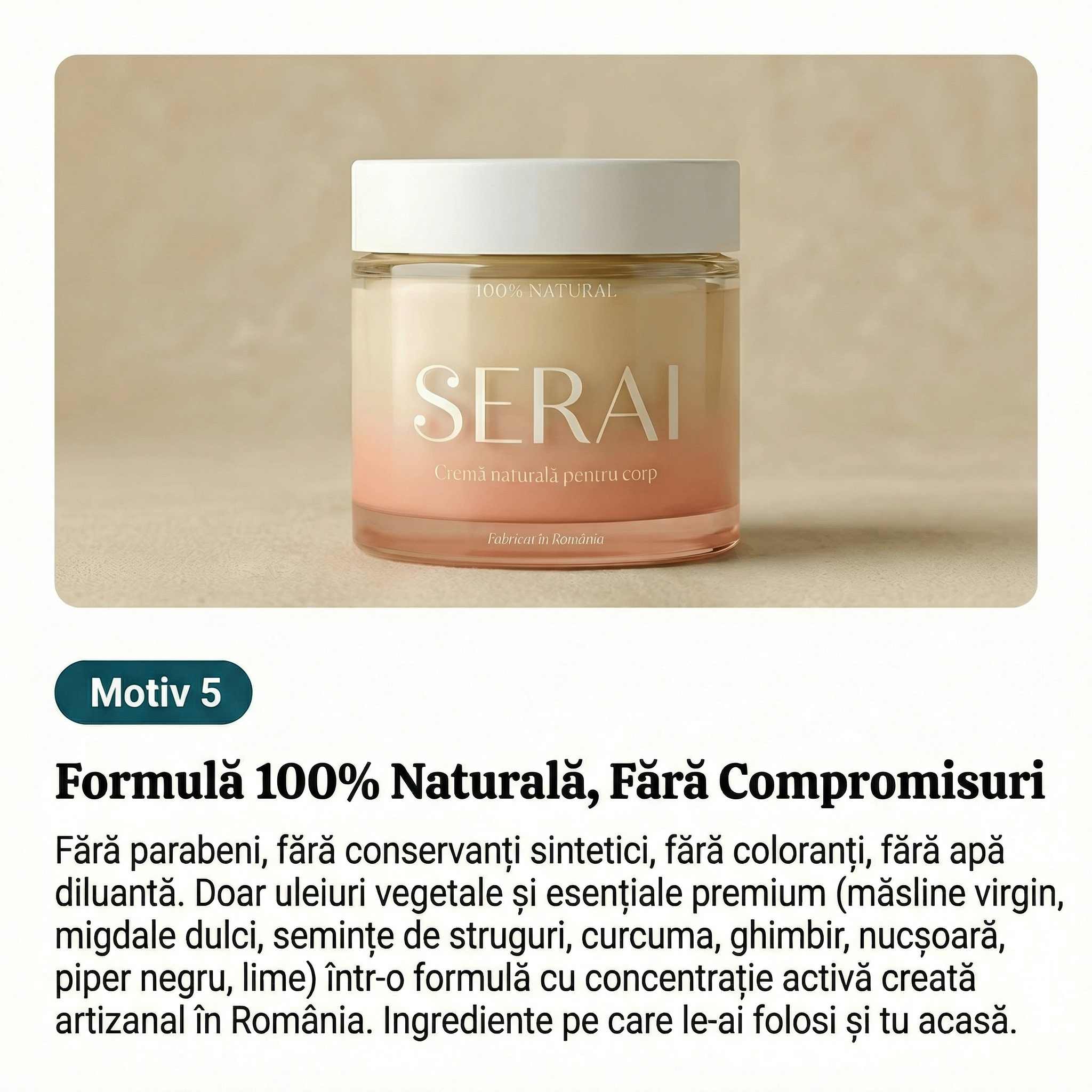 Serai este creat artizanal în România, folosind exclusiv ingrediente naturale de calitate premium.